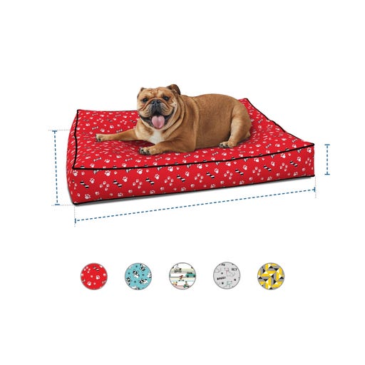 Our pillow beds for dogs come in an array of patterns and hues, letting you tailor the aesthetics to match your preferences and your pet’s individuality. They are available in user-friendly measurements to ensure the right fit for every dog. Each bed is outfitted with a robust zipper for effortless removal, and decorative ties and piped edges that enhance both the style and durability. A handy handle simplifies transportation, perfect for repositioning whether indoors or out. For an added personal touch, you can customize the corners of the custom dog bed, turning it into a unique sanctuary that mirrors your pet’s personality and complements your living space.Don't forget to check out our dog bed cushion cover for extra protection and easy maintenance!