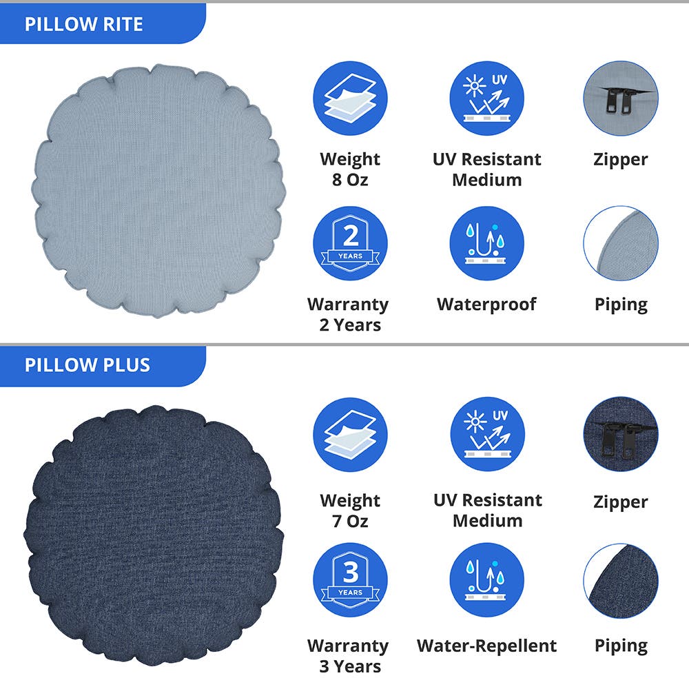 These outdoor throw pillows come in completely custom sizes to match your unique requirements. Just refer to our measuring guide for a precise measurement tutorial and select your desired size. These covers come with a leeway of 0" to -1" for a really customized and comfortable fitting of the cover. With a varied range of colour choices, these pillows are aesthetically appealing as well. Our throw pillows also come with zippers that make it easy to encase and remove the pillows. The piped edges enhance durability and protection while also keeping the pillows looking sharp. You can customize these round decorative throw pillows by adding a design, logo or text to create a unique piece. Whether you want to showcase a cherished image or use the pillows as a marketing tool, personalization options allow you to choose the color, font, and placement on the cover.. Don’t forget to check out our customizable throw pillows for more options.