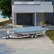 Protect your cherished jon boat from the harsh elements with our top-tier Jon Boat Cover, a must-have for any discerning boat owner. Crafted from either Cover Rite or WeatherMAX 80, these boat covers offer unparalleled durability against UV rays, rain, and potential physical damages like tears and abrasions. Our design features air vents to reduce condensation, ensuring your boat remains dry and in pristine condition. The adjustable straps equipped with push clip buckles guarantee a secure fit, while the lightweight construction makes handling, storage, and transport effortlessly manageable. With double-stitched reinforcement, this cover promises longevity and supreme protection. Choosing our Custom Boat Covers not only extends the lifespan of your vessel but significantly cuts down on maintenance time. Available in various dimensions with options for color choices and customization with logos or graphics, we ensure your cover is as unique as your boating style. Dive into our Boat Cover collection; let's keep your adventures endless and maintenance minimal.