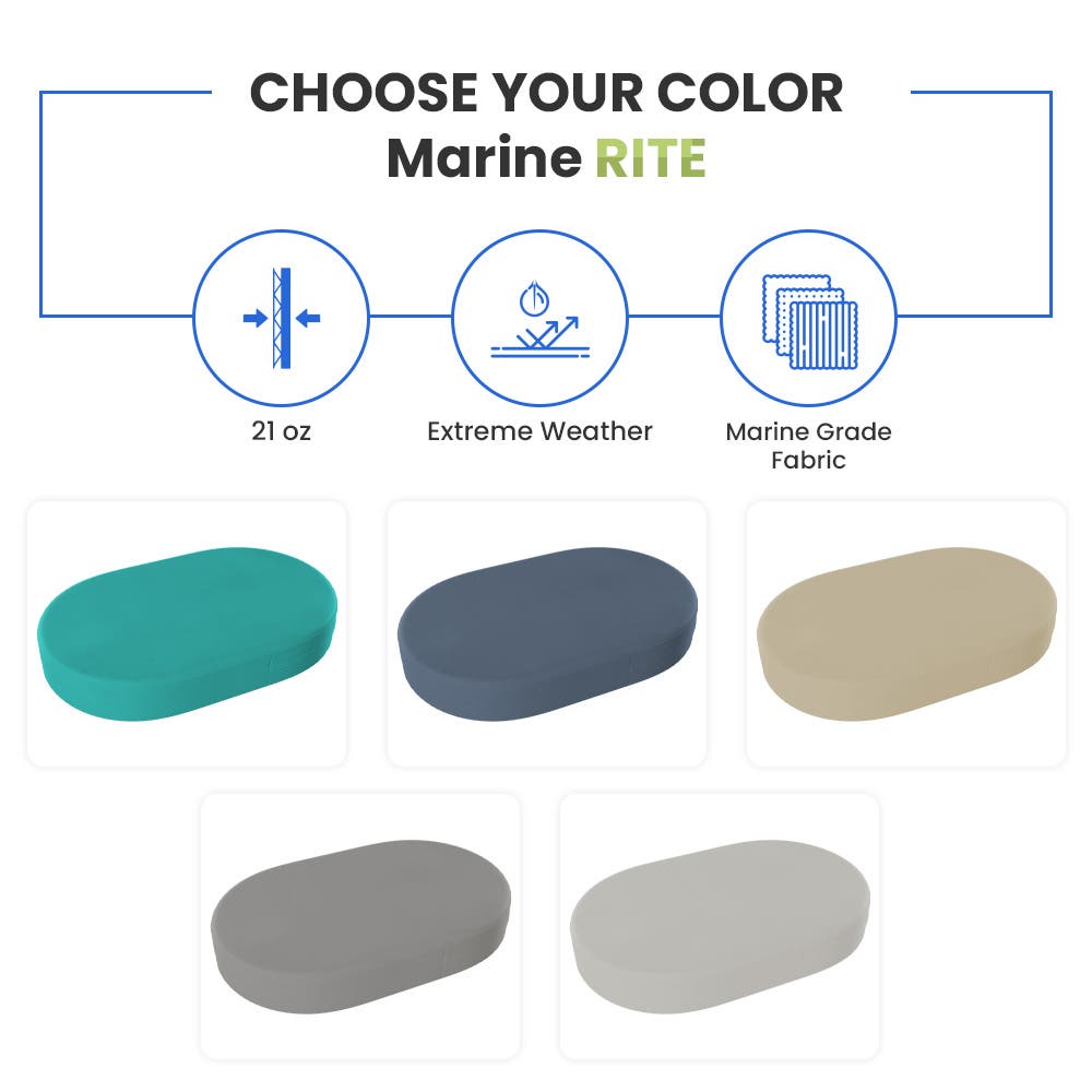 Our oval-shaped boat cushions are tailor-made to seamlessly fit into curved or rounded spaces to maximize comfort and space efficiency. Their shape provides a smooth, cohesive look that complements the boat's design, while also offering ergonomic support. Oval cushions can fill gaps and corners more effectively than traditional shapes, enhancing overall seating comfort and aesthetic appeal.
