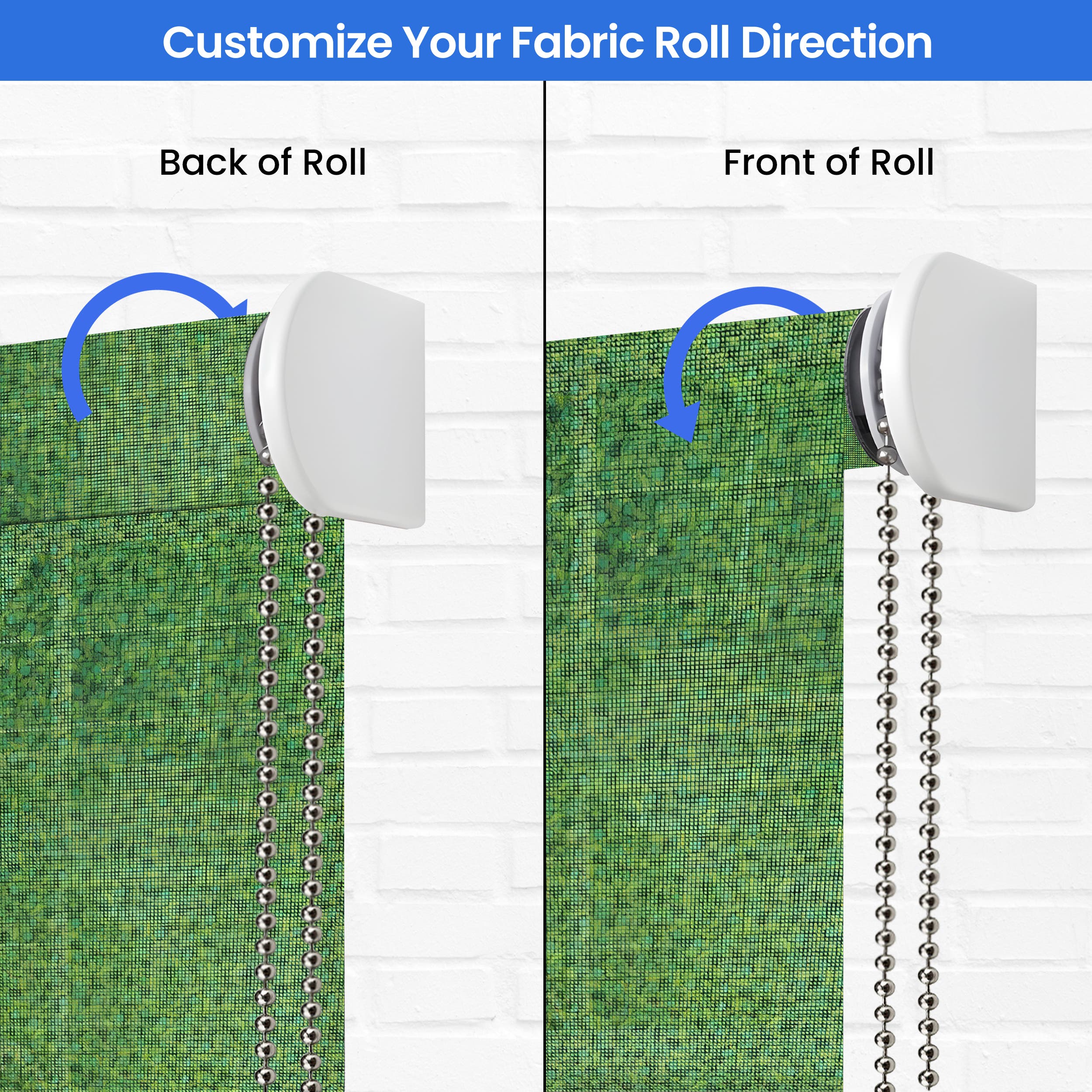 We understand that every home is unique, which is why our indoor shades for windows are fully customizable. Choose from a variety of pre-printed templates to find the perfect pattern that complements your décor. Available in custom sizes, they can be tailored to fit any window or door in your home. Select your preferred lift option from white nylon bead chain or white crank, and decide on the lift side for convenient operation. You can also choose the fabric roll direction, either from the back of the roll or the front, to achieve the desired look and functionality. Optional valance and side channel accessories are available to enhance the appearance and performance of your decorative roller shades.
