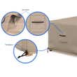 Crafted from premium, polyester fabric, these outdoor patio table covers boast remarkable durability. UV-treated for a sophisticated look, they also resist water, tears, mildew, and abrasions. Perfect for moderate weather, these lightweight yet robust covers safeguard your tables while maintaining a sleek aesthetic, complementing your outdoors.