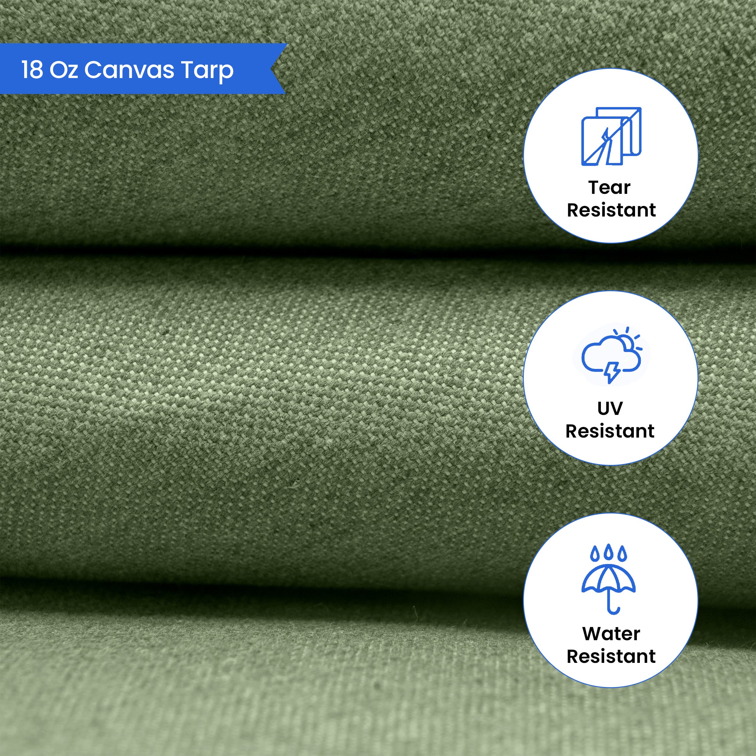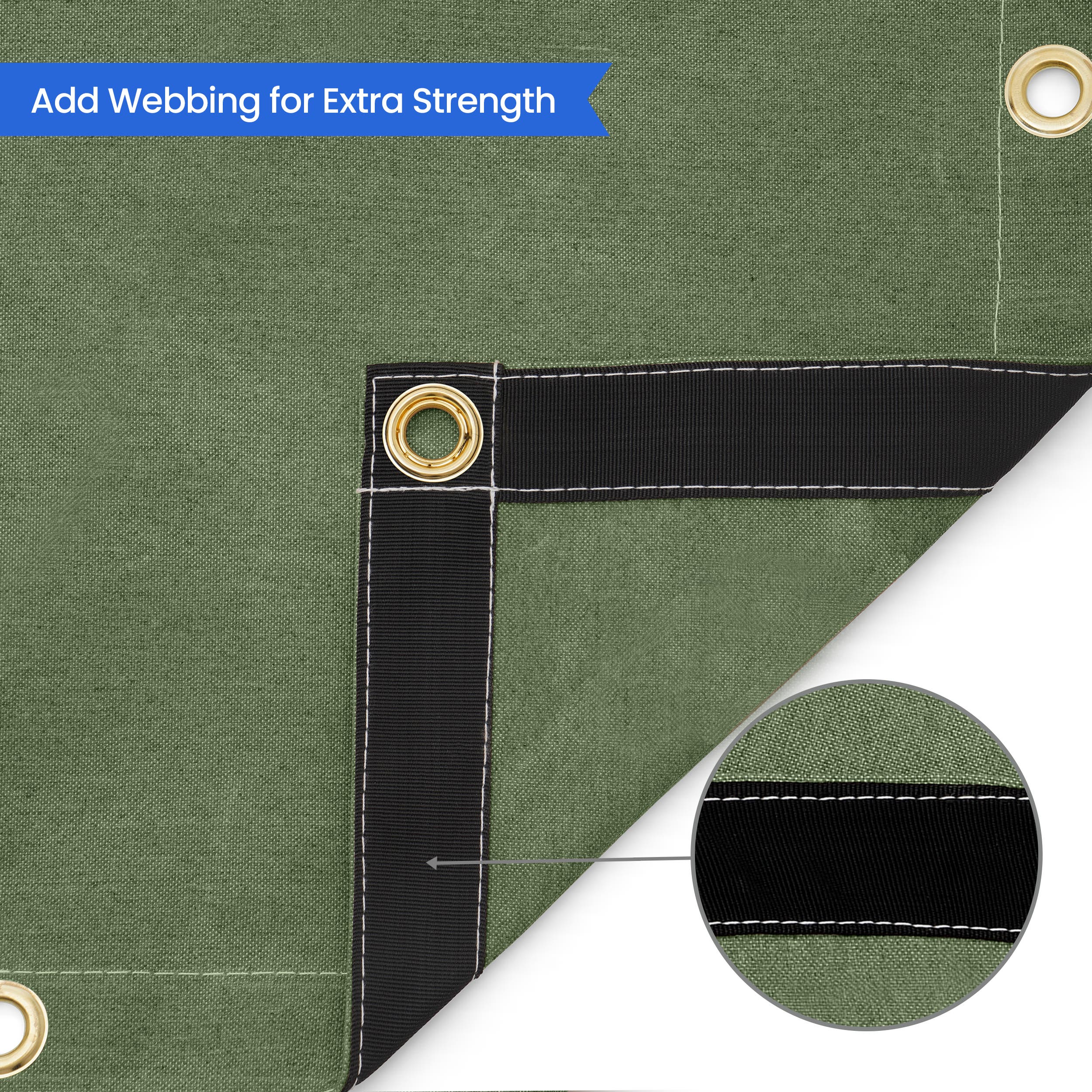 Our heavy duty canvas tarps are crafted from premium poly-cotton fabric, known for its water repellency and lighter weight, tipping the scales at just 18 oz. They are made from an 18 oz, 28 mil thick poly-cotton blend, specifically designed for moderate weather conditions. This makes them 20%-50% lighter than traditional cotton or chemically-treated alternatives. They feature high-tensile strength which provides superior abrasion resistance, promising long-lasting durability and value. Enhanced with a water-repellent wax treatment, these tarps are ready to tackle various weather conditions while maintaining their integrity. Despite their sturdiness, these tarps also offer low UV resistance to ensure prolonged material preservation and performance in diverse environments.