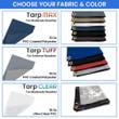 - Fabric Selection: Choose from a variety of materials like Tarp Max for enhanced durability, Tarp Tuff for extra strength, Tarp Clear for visibility or wax treated Tarp Canvas