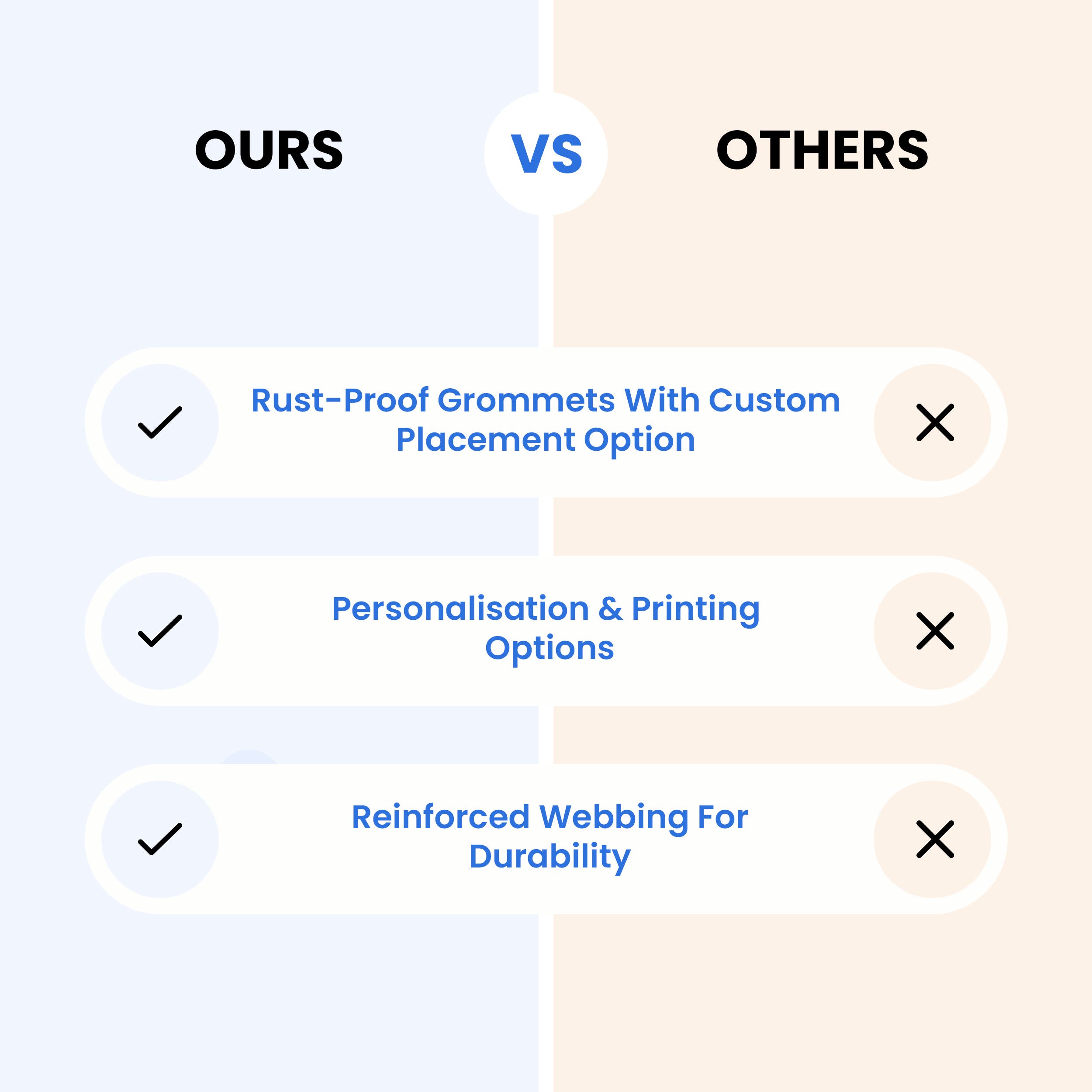 Each tarp includes corner grommets for secure attachment, a 1”-2" sizing leeway, and optional webbing for added strength. Add a personal touch with UV-resistant text, logos, or images, ensuring your custom tarp isn’t just protective but also visually appealing.