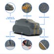 Reflective bands are incorporated into our covers to improve visibility in areas with high traffic and low light. In the dark, this makes it easier to identify and prevents other vehicles from colliding with your parked car.
