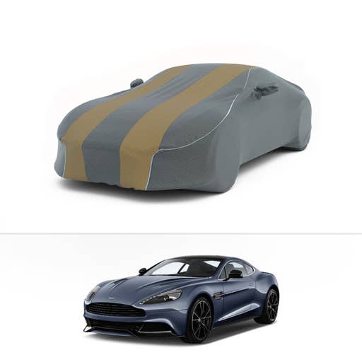 Upgrade the protection of your Aston Martin Vanquish S with our custom Vanquish S car cover, tailored to accentuate its aggressive styling. This high-tech cover combines breathable, water-resistant fabric with a plush microfiber lining, preserving your grand tourer's lustrous finish. Featuring contoured side mirror pockets and a front spoiler accommodation, it ensures a snug fit around every curve. The cover's reflective piping adds nighttime visibility, while reinforced grommets allow for secure tie-down in windy conditions. Easy to install with its lightweight design, it includes a compact storage pouch and a 3-year warranty. Defend your Vanquish S against the elements and maintain its timeless allure with our premium, model-specific car cover.