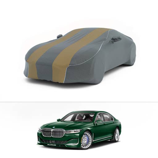 The BMW Alpina car cover secures your sports car’s precision engineering of BMW with bespoke enhancements from Alpina. The custom-made car cover provides a precise fit that accentuates your car's distinctive profile. Its lightweight, breathable fabric shields the aluminum body from UV damage and scratches. While the waterproof layer prevents moisture buildup, reducing the risk of rust. The cover is available in two materials—Duro Pro and Duro Luxe—at 160 GSM and 240 GSM, respectively, with double-stitched seams on the former and double premium-stitched seams on the latter. Each cover comes with a warranty ranging from 10 years to a lifetime. You'll also receive a free storage bag with your purchase, whether it's for a sports car, hatchback, SUV, or other models, along with complimentary shipping.