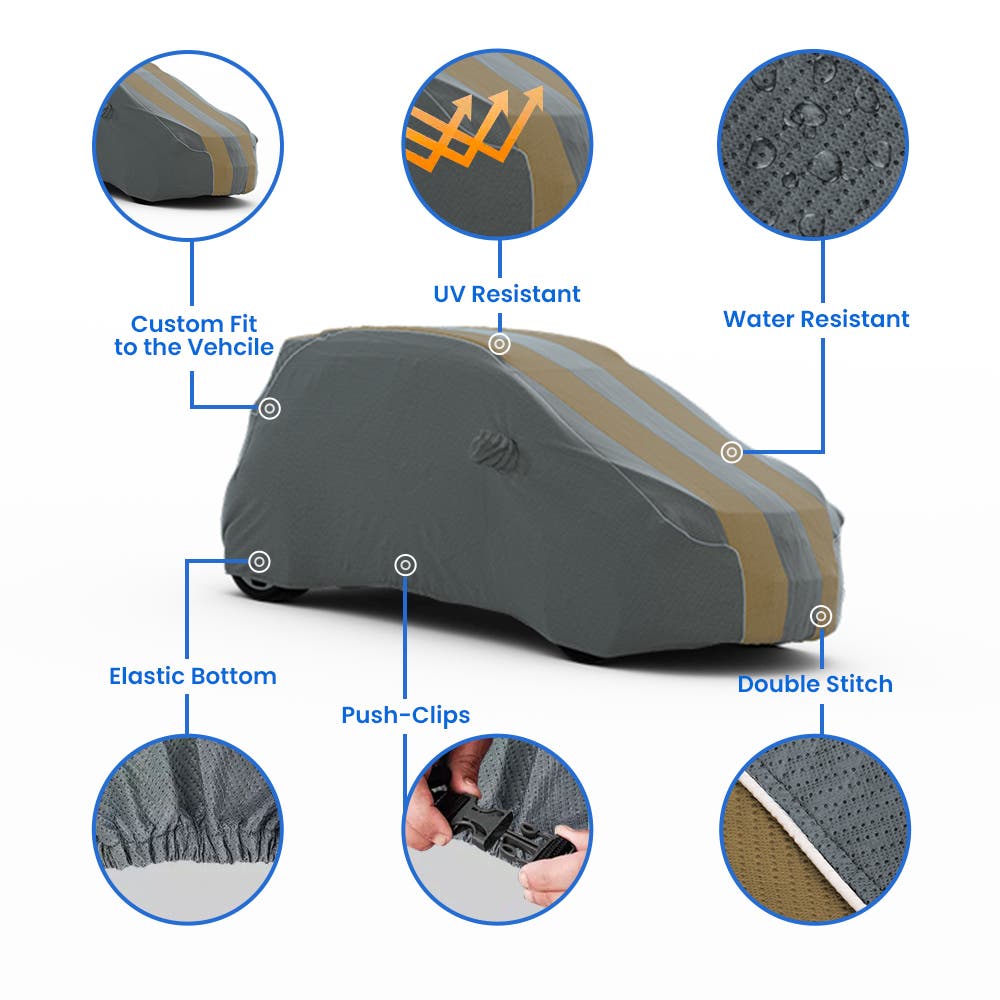 Eagle Talon Car Cover from Covers & All ensures tailored protection for your sport compact coupe, designed to maintain its distinct style and iconic two-tone body color. Crafted for both aesthetic appeal and durability, our custom-fit covers shield your Eagle Talon from dust, UV rays, and outdoor elements, ensuring it remains in top condition whether parked indoors or outdoors. Choose between non-woven fabric with a 10-year warranty or premium polyester with a lifetime guarantee, both offering superior weather resistance and breathability. Elastic hems and mirror pockets ensure a secure fit, while a complimentary storage bag adds convenience. Explore our range of hatchback covers today for reliable protection year-round.