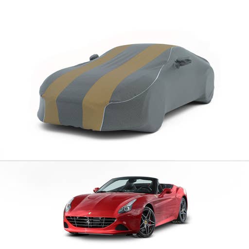 Shield your Ferrari California with our custom-fit car cover, designed for exceptional style and durability. Crafted from high-quality, all-weather materials, this sports cover provides robust defense against rain, snow, UV rays, and dust, maintaining your car's flawless finish. The breathable fabric allows for adequate airflow, preventing moisture buildup that can lead to rust or mold. Inside, a soft, non-abrasive lining gently guards your paintwork against scratches and dings. Precision-cut for a snug fit, the Ferrari California car cover features reinforced mirror pockets and an elastic hem to stay securely in place, even in windy conditions. Lightweight and easy to handle, it includes a storage bag for convenient transport and storage. Choose this custom cover to keep your Ferrari California’s stunning appearance intact, whether parked in the garage or exposed to the elements.