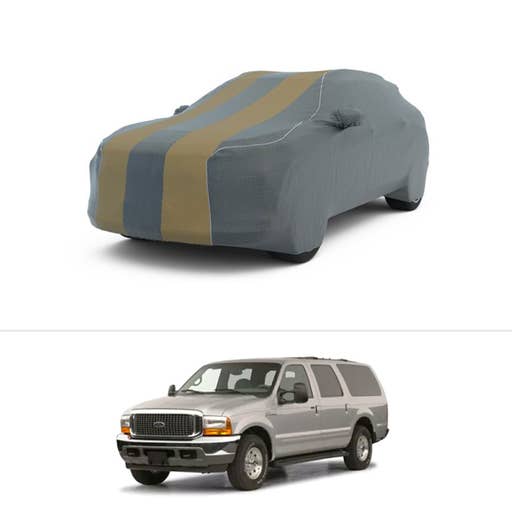 Covers&All made-to-measure car cover precisely match the Ford Excursion unique SUV appearance, helping you keep it looking sharp all year round. These SUV car covers ensure a custom fit while enhancing the vehicle's standout features, like its muscular wheel arches and bright LED headlights. For regions that are prone to severe rain, go for our non-woven fabric, which comes with a 10-year warranty to control moisture and prevent mold. Our premium polyester alternative, which offers a lifetime warranty and outstanding UV protection to keep your Excursion’s paintwork dazzling, is ideal for people who live in sunnier locations. Elastic hems and strengthened grommets are two characteristics that help this Ford Excursion car cover stay firmly in place. For convenience of usage, a free storage bag is also supplied. The custom covers are ideal for both indoor and outdoor environments as it protects your car from the weather and keeps it looking new for many years to come.