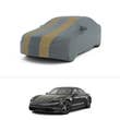 Protect your Porsche Taycan from external elements with our premium car cover. The custom fit cover provides full coverage and all-weather protection, making it ideal for vehicle protection. This cover is made of high-quality tearproof polyester with a lifetime warranty and non-woven fabric with a 10-year warranty. It resists UV rays, rain, and dust. The design has integrated mirror pockets and an elastic hem for a snug and comfortable fit. Push clips minimize wind damage, while the soft inner lining and double-stitched seams protect your Taycan's finish from scratches. Quickly cover and uncover your car and stow the cover in the complimentary bag. Our premium car cover preserves your Porsche Taycan's elegance and keeps it in pristine shape.