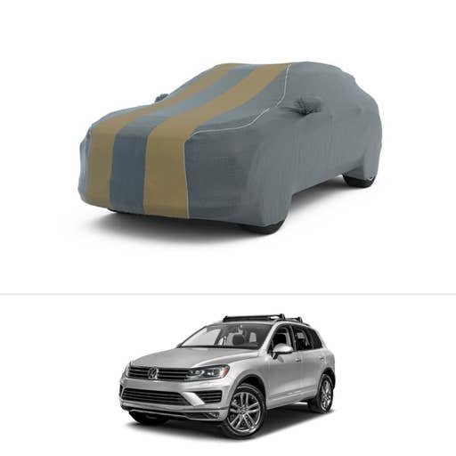 Embracing the flawless design and luxury features of this premium SUV, our car cover is the perfect solution for Volkswagen Touareg’s ultimate protection. Crafted from premium quality and tearproof fabric options, our SUV car cover keeps your vehicle safe from environmental damage and scratches. The reflective strips keep your car safe even in dim light and the presence of elastic hem with push clips keep the cover in place even during windy weather conditions. Featuring mirror pockets, our SUV car cover offers a perfect fit for your car, enhancing its shape, lines and contours. Our fabric comes with 10 years to lifetime warranty along with a free storage bag.