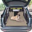 Our dog car trunk cover is crafted from 600 denier, 100% solution-dyed polyester fabric with a PU coating on one side, making it lightweight, flexible, and water-repellent. Weighing just 8 oz, this cover is designed to resist tears, abrasions, and UV rays, ensuring long-lasting durability. The hollow silicon conjugated fiber filling adds extra cushioning for comfort, making car rides more enjoyable for your dog. Its water resistance prevents moisture damage and helps inhibit the growth of mold and bacteria. The cover is perfect for keeping your car clean, even if your dog has an accident. Whether you're heading to the park or on a road trip, this dog car trunk cover will protect your car and keep your pet comfortable.