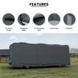 This Class A RV cover protects your vehicle from sun, rain, dust, and debris. It fits large RVs snugly, is easy to install and remove, and helps maintain the RV’s exterior condition. The durable, weather-resistant material ensures long-term protection, making it ideal for storage and travel.